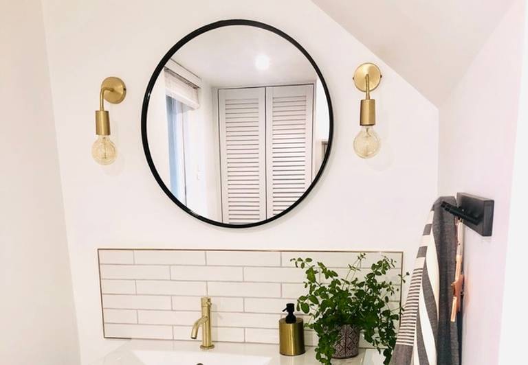 Simple yet effective, wall lights enable us to make the entire space feel bright; they're also a great space-saving tool. We'd advise placing wall lights either side of the mirror to ensure the light is evenly cascaded for tasks which require even lighting, such as applying makeup.